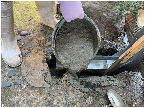 目隠しのため2段支柱フェンスを土間コンクリートへ柱埋め込みで設置、同時にFITパワーの設置もしました。