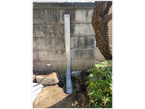 震災時の災害を未然に防ぐためブロック塀の段数を減らし、門柱付近のみ耐震補強金具FITパワーを取り付け補強しました。