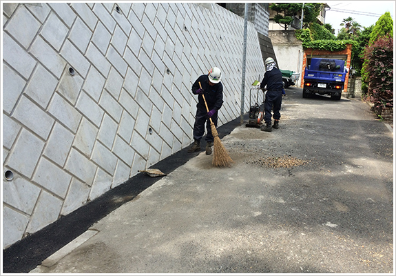 最後に清掃を行い、砂利や土等を綺麗に処理します